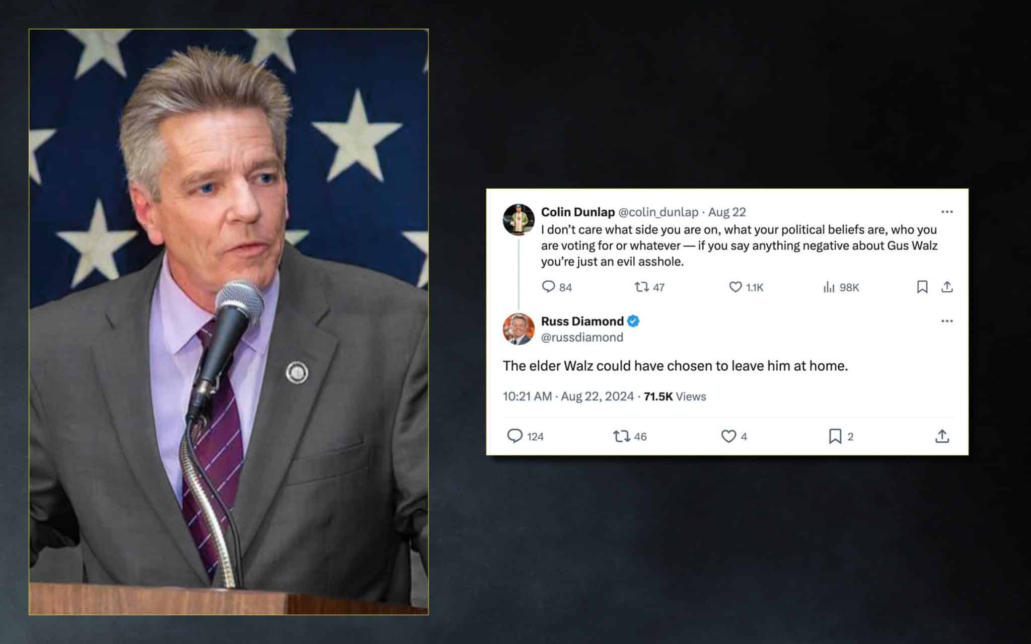 Is bullying a child a new low for Pennsylvania Republican State Rep. Russ Diamond? It’s a tough call. Nevertheless, Democrats want his state GOP colleagues to condemn his post on X suggesting Democratic Vice President nominee Tim Walz should have left his son Gus, who is neurodivergent and has learning disabilities, at home if he didn’t want him to be mocked by people like him online.