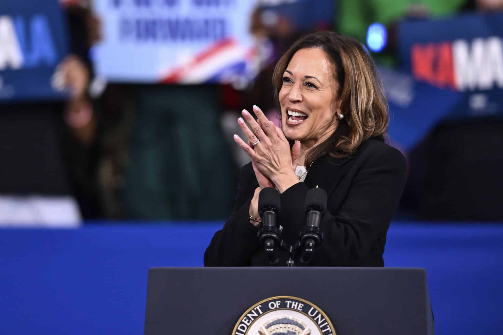 “We’re having a good time, aren’t we?” Harris declared, smiling as her boisterous crowd chanted: “USA! USA! USA!”