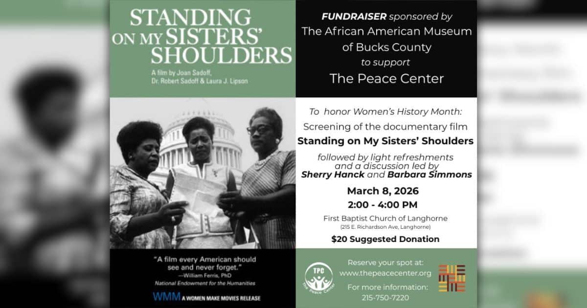 The African American Museum of Bucks County is hosting a fundraising screening of multiple-award winning “Standing on My Sisters’ Shoulders” to honor Black History Month and support the ongoing work offered by The Peace Center in Langhorne.